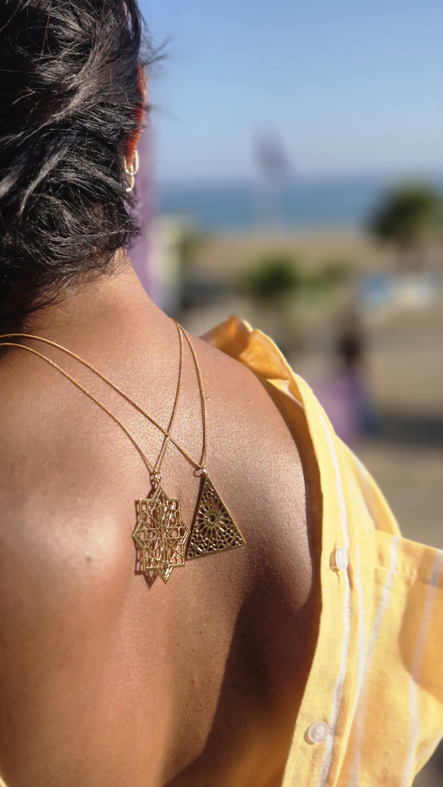Ce collier unique célèbre la beauté des symboles islamiques à travers une étoile ajourée intégrant la lettre Alif — première lettre de l’alphabet arabe, souvent associée à Dieu, à la création et à l’unité.